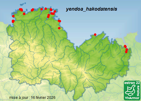 ![]() en savoir plus : https://www.seaweed.ie/descriptions/Dudresnaya_verticillata.php et aussi : https://www.algaebase.org/search/species/detail/?species_id=X80d35ffb93163852 Carte de présence dans le 22 (observée le plus souvent en épave)