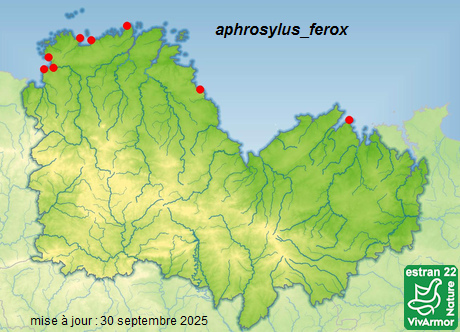 Les Diptères sont des insectes qui ont une seule paire d'ailes (ailes postérieures transformées en balanciers) : chironomes, mouches, taon... Ici quelques espèces présentes sur l'estran, sur le schorre, la plage, en milieu rocheux ou au niveau de la laisse de mer. Chironomidae Clunio marinus taille inférieure à 2 mm important dimorphisme sexuel (femelles sans ailes) ![]() ![]() ![]() observés en grand nombre à la surface de l'eau dans des mares lors d'une marée basse de vives eaux en savoir plus : https://fr.wikipedia.org/wiki/Clunio_marinus Carte de présence dans le 22 ![]() Tephritidae Myopites eximia taille : 4mm(♂) à 5 mm(♀) sur Limbarda crithmoïdes (schorre ou milieu rocheux) ![]() ![]() ![]() Dans cette famille, l’ovipositeur de la femelle est entouré d’une extrémité abdominale conique sclérifiée, munie d’épines de chitine qui agissent comme une râpe dont le mouvement tournant permet le percement du tissu végétal lors de la ponte (J & H Haupt, 2000). ![]() ![]() ![]() précisions apportées par Daniel Philippon qui a observé, identifié et photographié cette mouche sur nos estrans : "Les adultes sont obtenus à partir de galles formées dans des capitules défleuris de Limbarda crithmoïdes (inule fausse-criste, famille des Astéracées) prélevés sur la partie supérieure des schorres. Ces capitules présentent une morphologie plus globuleuse que la normale; ils deviennent souvent durs et déformés. Une femelle a été observée et photographiée en situation de ponte (DP, Lanmodez 2016). Les œufs sont déposés sur la fleur. La larve descend dans le réceptacle par un akène en formation. Celui-ci est inclus dans la galle, et servira sans-doute de voie de sortie lors de l’émergence. Deux larves et une pupe ont été observés dans le même réceptacle (DP, Lanmodez 2017), ce qui représente une situation habituelle Après collecte, l’émergence se produit au bout de 5-6 jours. L’hôte est régulièrement immergé lors des marées de fort coefficient (> 100). Les larves et les pupes sont alors à l’abri dans la galle. L’émergence des imagos se produit parfois dès le mois de juin, mais elle a lieu principalement en août-septembre, lors des marées de morte-eau. Je suppose qu’il y a plusieurs générations par été, bien que la littérature britannique n’en mentionne qu’une (White, 1988). J’ignore sous quelle forme l’espèce passe la mauvaise saison après le flétrissement puis la chute des inflorescences, mais il est probable que des larves et /ou des pupes restent présentes dans la litière." Carte de présence dans le 22 ![]() Tabanidae ![]() Certaines espèces sont particulièrement inféodé aux marais maritimes, ici posé sur Limonium vulgare. Muscidae nervure anale n'atteignant pas le bord de l'aile (ce qui n'est pas le cas chez les Anthomyiidae) Limnophora obsignata espèce fréquentant les marais maritimes mais aussi l'intérieur des terres ![]() ici une femelle observée sur une inflorescence de Cotule pied-de-corbeau (Cotula coronopifolia) en savoir plus : https://jessica-joachim.com/insectes/dipteres/muscidae/limnophora-obsignata/ Carte de présence dans le 22 ![]() Villeneuvia aestuum taille : 5,5 à 7mm espèce exclusivement littorale, observée en bas de plage ![]() ![]() ![]() Merci à Renaud Gallis qui a confirmé son identification. "Une espèce reconnaissable aux angles de sa bouche, à ses 4 taches brunes sur les tergites et à son allure générale." Carte de présence dans le 22 ![]() genre Lispe : palpes fortement dilatés (en spatule), plusieurs espèces sur les estrans plus ou moins vaseux ![]() ![]() ![]() Lispe caesia 5-7mm observées ici avec quelques Lispe marina en fond de baie à proximité et sur la slikke ![]() ![]() ![]() Lispe avec des palpes noirs, un large triangle frontal à marges convexes, des pattes sombres ![]() ![]() ![]() mâle reconnaissable au motif de son abdomen et à ses tarses arrières modifiés remarque : nous avons observé Lispe caesia prédatant le dolichopodidé Hydrophorus oceanus en savoir plus : sur researchgate autres photos de Steven Falk sur flickr (avec commentaire sur l'identification de cette espèce) Carte de présence dans le 22 ![]() Lispe marina taille : 5-6 mm espèce de l'estran, souvent observée à proximité de la slikke ![]() ![]() ![]() chez le mâle, les tarses des pattes médianes sont caractéristiques ![]() ![]() ![]() ci-dessous : la coloration des antennes, les grands palpes jaune-orangé, le large front brun et la présence de 2 soies antéro-ventrales sur les tibias postérieurs permettent de reconnaître les femelles ![]() ![]() ![]() remarque : nous avons observé à plusieurs reprises des Lispe marina prédatant des Xanthocanace ranula en savoir plus : article de Joseph Bergerard qui a découvert cette espèce en Bretagne Carte de présence dans le 22 ![]() Lispe loewi taille : 7 mm femelle observée sur le sédiment au niveau d'une lagune à salinité variable ![]() ![]() ![]() Lispe à palpes noirs qui se différencie facilement de L. caesia par son triangle frontal étroit à bords droits ![]() ![]() ![]() ![]() L. loewi ressemble à L. litorea, la femelle s'en distingue par les motifs de son abdomen, le nombre et la disposition des soies de son tibia médian et de son fémur postérieur. autres photos de Steven Falk sur flickr Carte de présence dans le 22 ![]() Dolichopodidae mouches prédatrices ayant le plus souvent une coloration vert métallique et de longues pattes, fort dimorphisme sexuel (clés des mâles et des femelles distinctes) Campsicnemus armatus essentiellement littoral, ici un mâle observé en haut d'estran sur fucus en épave ![]() ![]() pattes médianes du mâle portant des soies caractéristiques, autres pattes plus "classiques" ![]() ![]() ![]() Un grand merci à Etienne Brunel qui a déterminé ce dolichopodidae ! genre Aphrosylus : genre constitué d'espèces vivant au niveau de l'estran sur les rochers et 